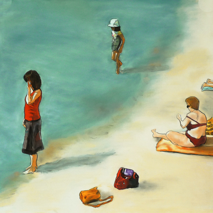 SCÈNE DE PLAGE 50×50 cm